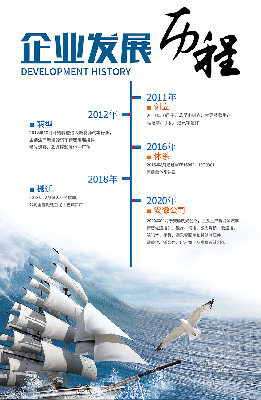 久興源起源于江蘇昆山,2011年創(chuàng)立江蘇久興源新能源科技有限公司,2012年10月開始轉型進入新能源汽車行業(yè)。安徽久興源新能源科技集團有限公司于2020年04月在安徽省滁州市明光市經(jīng)濟開發(fā)區(qū)建立,致力于新能源動力電池模組配件的研發(fā)、設計、生產(chǎn)與銷售,主要產(chǎn)品為18650、26650、32650、方形與軟包電池用的電池鎳片、鍍鎳鋼片、銅片、鋁片、銅排、鋁排、銅軟連接、鋁軟連接、銅鎳激光復合片、鋁鎳激光復合片等產(chǎn)品,產(chǎn)品廣泛應用于手機、電腦、電動工具、電車汽車、儲能、航天及軍事等高端領域,憑借多年的技術力量及專業(yè)化的技術團隊,已為眾多品牌車型提供了一站式新能源三電系統(tǒng)精密結構件,深得廣大客戶的一致認可與信賴。在品質(zhì)保證方面,公司獲得了法國貝爾認證公司頒發(fā)的IATF16949:2016和 ISO9001:2015雙質(zhì)量體系認證,并擁有一套完整的品質(zhì)保證系統(tǒng)和一批專業(yè)化的品質(zhì)管理和技術人員,公司擁有新能源Pack類精密連接件專利36項,并獲得國家級高新技術企業(yè)、江蘇省民營科技企業(yè)、昆山市科技研發(fā)中心、昆山市工程技術研究中心等稱號。公司依托多年的行業(yè)內(nèi)深耕拓荒式的專業(yè)經(jīng)驗積累,不斷開拓創(chuàng)新,服務更多客戶,未來公司將更專注于新能源領域的發(fā)展,為廣大客戶提供動力電池模具塑膠支架、線束、電池殼等配套產(chǎn)品,以便于廣大客戶一站式采購,公司為成為全球新能源領域內(nèi)三電系統(tǒng)精密結構件一站式服務提供商而不懈努力!
